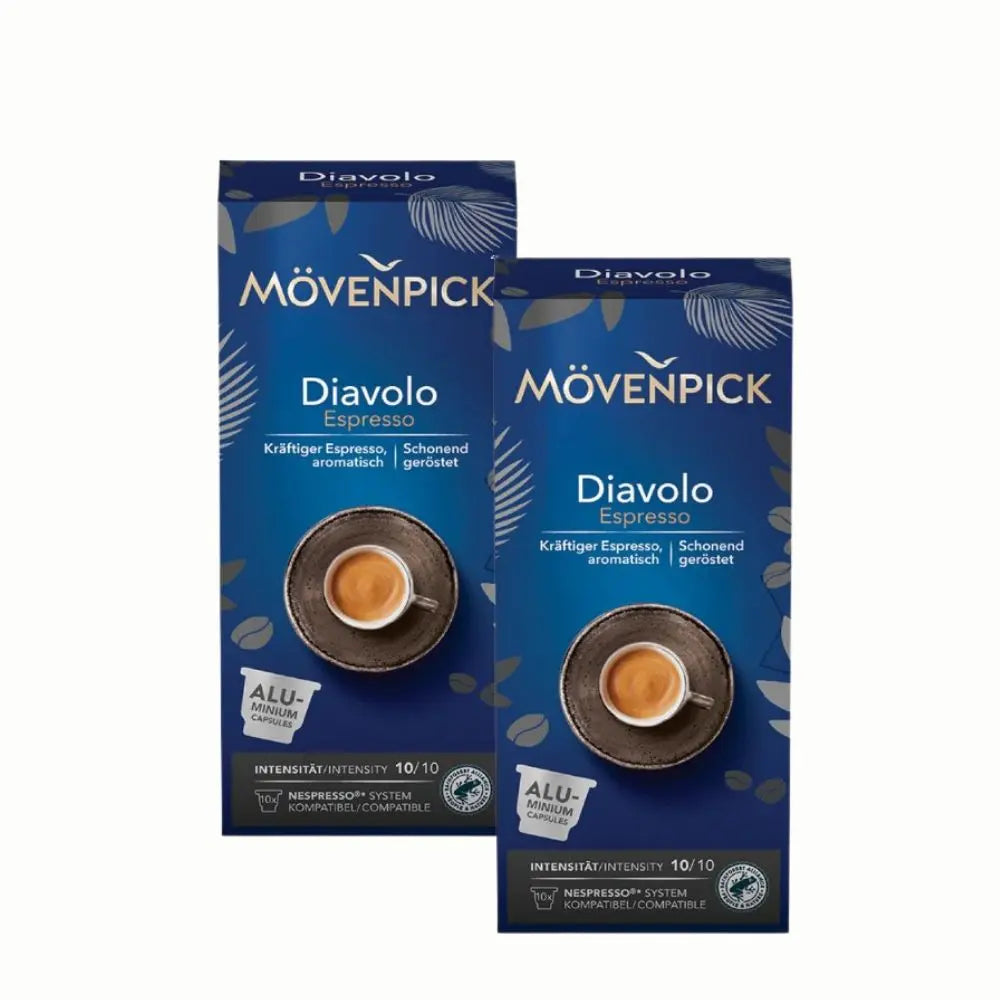 El Café Gourmet Movenpick Diavolo Espresso Forte cápsulas Nespresso es un típico café Espresso estilo Italiano. Este café expreso tiene un pronunciado sabor tostado y un cuerpo intenso.